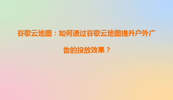 谷歌云地图:提升户外广告投放效果的智能解决方案 在数字化时代,户外广告的精准投放成为品牌竞争的关键。谷歌云地图(GoogleMapsPlatform)凭借其强大的数据整合能力和AI技术,为广告主提供了从选址到效果追...