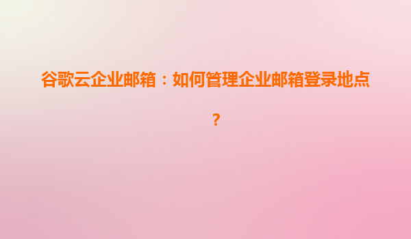 2025-04-16谷歌云企业邮箱的登录安全管理需求 随着企业数字化转型加速,邮箱作为核心通信工具承载着大量敏感数据。谷歌云企业邮箱通过智能登录监控系统,可实时检测全球200+国家/地区的访问行为,其地理围栏...