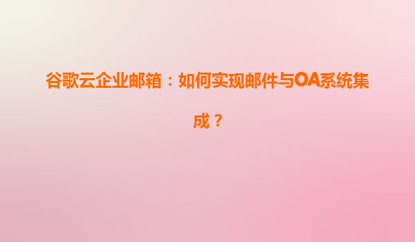 2025-04-11谷歌云企业邮箱:如何实现邮件与OA系统集成? 一、为什么需要邮件与OA系统集成? 在现代企业中,邮件系统与OA(办公自动化)系统的协同工作已成为提升效率的关键。通过集成,企业可以实现以下目标: ...