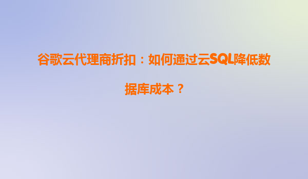 2025-04-09通过谷歌云SQL与代理商折扣有效降低数据库成本 谷歌云SQL的核心成本优化能力 谷歌云SQL作为全托管式关系型数据库服务,通过自动化运维、资源弹性伸缩和深度优化的计费模式,显著降低了企业数据库...