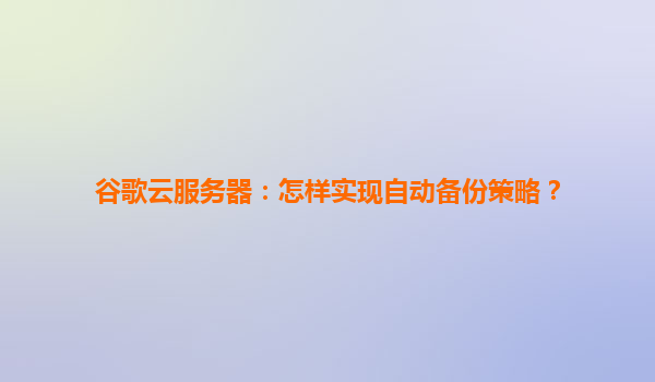2025-04-08谷歌云服务器自动备份策略的重要性 在数字化时代,数据是企业最核心的资产之一。谷歌云服务器(GoogleCloudPlatform,GCP)通过其强大的基础设施和灵活的备份工具,为用户提供了高效、安全的自动备份解决...