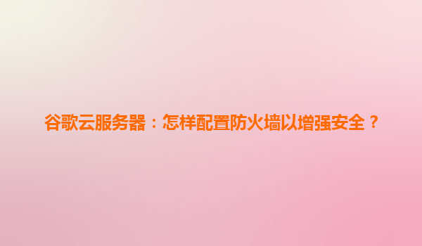 2025-04-06谷歌云服务器:如何配置防火墙以增强安全? 一、防火墙配置对谷歌云服务器的重要性 在云环境中,防火墙是保护服务器安全的第一道防线。谷歌云(GoogleCloudPlatform,GCP)提供了灵活的防火...