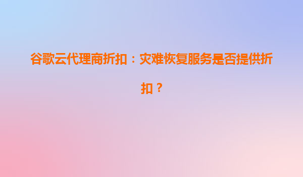 2025-04-06谷歌云代理商折扣:灾难恢复服务是否提供折扣? 一、谷歌云代理商折扣政策概述 谷歌云(GoogleCloud)作为全球领先的云服务提供商,始终致力于为企业提供灵活且高性价比的云解决方案。通过...