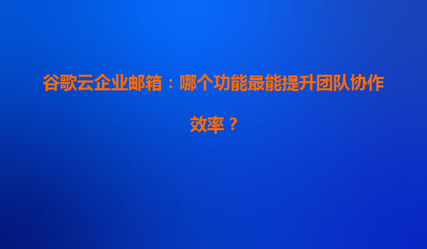 2025-04-05谷歌云企业邮箱简介与优势 谷歌云企业邮箱(GoogleWorkspace)是一款专为企业用户设计的云端邮件服务,其核心功能不仅包含高效稳定的邮件收发,还集成了智能管理工具和自动化功能。作为全球领先的云服务提...
