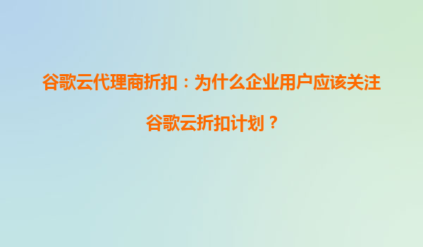 2025-04-04谷歌云代理商折扣:为什么企业用户应该关注谷歌云折扣计划? 一、谷歌云的核心优势 在探讨代理商折扣的价值之前,企业用户首先需要了解谷歌云(GoogleCloudPlatform,GCP)作为全球领先云服务商...