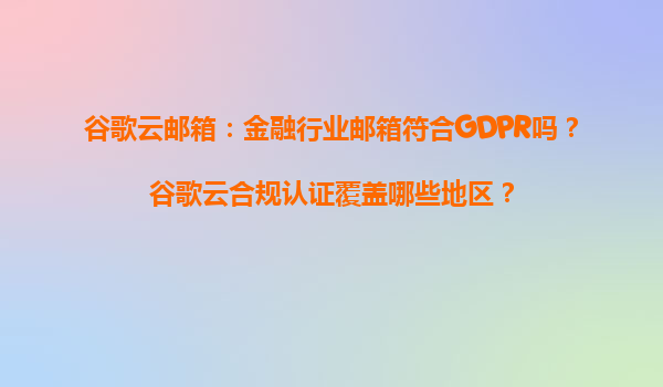 2025-04-04谷歌云邮箱在金融行业的GDPR合规性分析 金融行业对数据隐私和合规性要求极高,而谷歌云邮箱(GoogleWorkspace)通过其严格的安全措施和全球合规认证,成为许多金融机构的首选。...