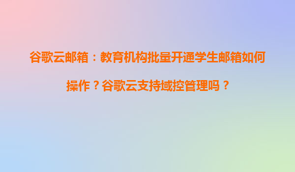 2025-04-04谷歌云邮箱在教育机构的批量开通与域控管理实践 一、谷歌云邮箱在教育场景的核心价值 谷歌云邮箱(GoogleWorkspaceforEducation)为教育机构提供完整的数字化协作生态,其批量开户与域控能力可显著...