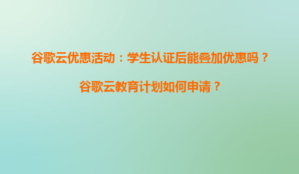 2025-04-03谷歌云学生认证与教育计划优惠指南 学生认证如何叠加谷歌云优惠 谷歌云为全球学生群体提供专属福利,通过edu邮箱完成学生身份认证后,用户可享受首年300美元免费额度,并可与新用户优惠叠加使用。...