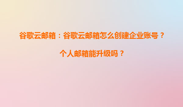 2025-04-02谷歌云邮箱:创建企业账号与个人邮箱升级指南 一、如何创建谷歌云企业账号? 谷歌云企业邮箱(GoogleWorkspace)为企业提供专业化的邮箱服务,创建流程如下: 注册谷歌云企业版:访问Google...