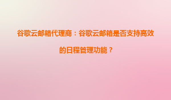 2025-09-16谷歌云邮箱代理商:谷歌云邮箱是否支持高效的日程管理功能? 引言:现代企业沟通的需求 在当今快节奏的商业环境中,高效的日程管理是企业沟通和协作的核心需求之一。谷歌云邮箱(Google...