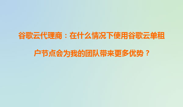 2025-09-16谷歌云代理商指南:何时选择谷歌云单租户节点为团队带来更多优势 在云计算领域,多租户架构因其资源共享和成本效益而广受欢迎。然而,在某些特定场景下,单租户节点能提供独特优势。作为谷歌云代理商,我们深知客...