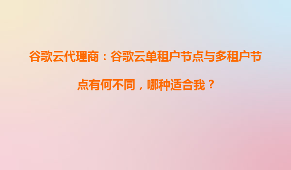 2025-09-16谷歌云代理商:谷歌云单租户节点与多租户节点有何不同,哪种适合我? 1.谷歌云的核心优势 在深入探讨单租户节点和多租户节点的区别之前,有必要了解谷歌云(GoogleCloud)的核心竞争优势。作为全球领先的云计...