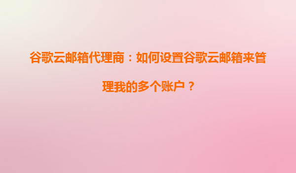 2025-09-16谷歌云邮箱代理商:如何设置谷歌云邮箱来管理我的多个账户? 在当今数字化的商业环境中,高效管理多个电子邮件账户对于企业和个人用户来说至关重要。谷歌云邮箱(GmailforBusiness,也称为GoogleWorkspace)...