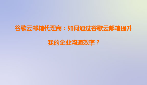 2025-09-16如何通过谷歌云邮箱提升企业沟通效率?谷歌云代理商的关键作用 一、引言:企业沟通效率的数字化需求 在远程办公和全球化协作成为常态的今天,企业邮件系统已从基础工具升级为战略资源。谷歌...