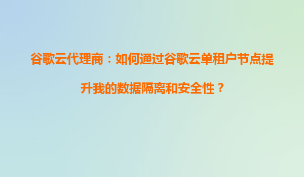 2025-09-16谷歌云代理商:什么是谷歌云单租户节点,为什么它适合我的业务需求? 引言 在云计算领域,数据安全和资源隔离一直备受企业关注。尤其是那些对合规性要求高、性...