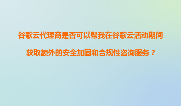 2025-11-06谷歌云代理商能否在活动期间提供额外的安全加固和合规性咨询服务? 谷歌云的核心优势 作为全球领先的云服务提供商,谷歌云凭借其强大的基础设施和创新技术,为企业用户提供了卓越的云计算解...