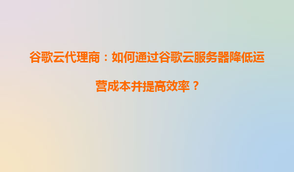 2025-09-16谷歌云代理商:如何通过谷歌云服务器降低运营成本并提高效率? 引言 在数字化转型的浪潮中,企业面临的挑战越来越多,如何在保证业务高效运转的同时降低运营成本成为关键。谷歌云(Googl...