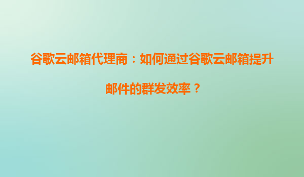 谷歌云邮箱代理商:如何通过谷歌云邮箱提升邮件的群发效率? 在现代商业沟通中,电子邮件仍然是企业推广、客户维护和信息传递的重要工具。对于需要大量发送邮件的企业或代理商来说,如何高效、稳定地进行...