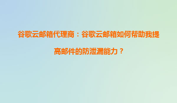 2025-09-16谷歌云邮箱代理商:谷歌云邮箱如何帮助我提高邮件的防泄漏能力? 一、引言 在数字化时代,电子邮件不仅是企业日常沟通的重要工具,也承载了大量敏感信息。然而,邮件泄露事件频发,给企业和个人带来了...