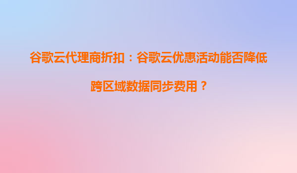 2025-09-16谷歌云代理商折扣:谷歌云优惠活动能否降低跨区域数据同步费用? 引言 随着企业数字化转型的加速,越来越多的公司开始将业务迁移到云端。谷歌云(GoogleCloudPlatform,GCP)作为全球领先的云计算服务提供商...