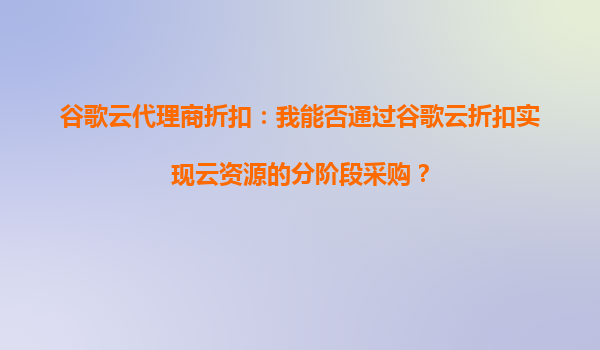 2025-09-16谷歌云代理商折扣:分阶段采购云资源的智慧选择 一、谷歌云的核心优势 在探讨如何通过代理商折扣实现分阶段采购前,需先了解谷歌云的三大核心优势: 全球基础...