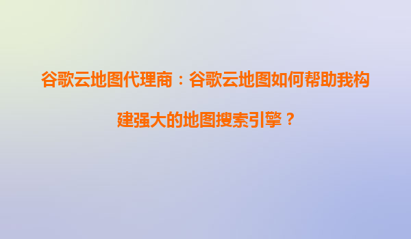 2025-09-16谷歌云地图代理商:谷歌云地图如何帮助我构建强大的地图搜索引擎? 一、标题解析与核心需求拆解 标题包含三个关键信息:"谷歌云地图代理商"强调服务渠道来源;"谷歌云地图"指明技术工具;"构建地图搜索引擎"明...