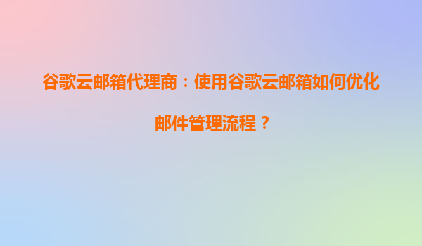 2025-09-16谷歌云邮箱代理商:使用谷歌云邮箱如何优化邮件管理流程? 一、引言 在现代企业运营中,高效的邮件管理系统是提升沟通效率、保障信息安全的关键。谷歌云邮箱(GoogleWorkspace)作为全...