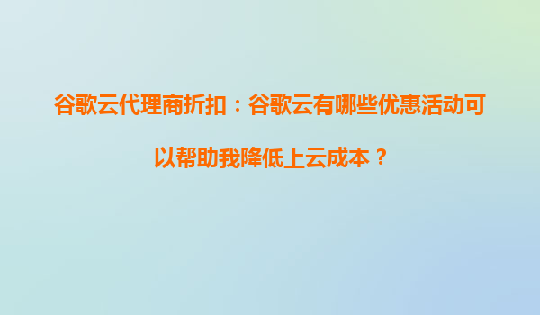 2025-09-16谷歌云代理商折扣:如何利用谷歌云折扣提升企业预算利用率? 一、谷歌云的核心优势与企业预算优化的关联 谷歌云(GoogleCloudPlatform,GCP)作为全球领先的云服务提供商,其技术架构和商业模式天然适合企业...