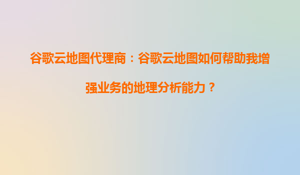 2025-09-16谷歌云地图代理商:谷歌云地图如何帮助我增强业务的地理分析能力? 引言 在当今数据驱动的商业世界中,地理空间分析已成为企业决策的关键工具。无论是物流优化...