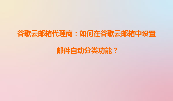 2025-09-16谷歌云邮箱代理商:如何在谷歌云邮箱中设置邮件自动分类功能? 一、谷歌云邮箱的自动化优势 谷歌云邮箱(Gmail)以其强大的AI技术和云端存储能力著称,支持通过过滤器(Filters)、标签...
