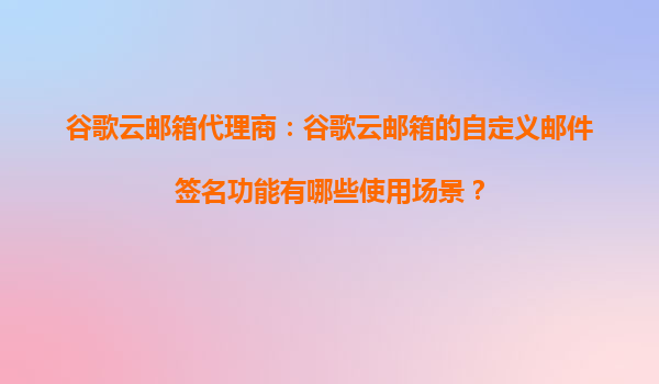 2025-09-16谷歌云邮箱代理商:谷歌云邮箱的自定义邮件签名功能使用场景与优势 引言 在现代企业通信中,电子邮件依然是不可或缺的工具。谷歌云邮箱(GoogleWorkspace)作为全球领先的企业邮箱解决方案,提供了丰...