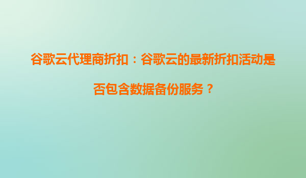 2025-09-16谷歌云代理商折扣:数据备份服务是否包含在内? 随着企业数字化转型的加速,云计算服务的需求日益增长。谷歌云因其卓越的性能、安全性和灵活性,成为众多企业的首选。近期,许多用户关注...