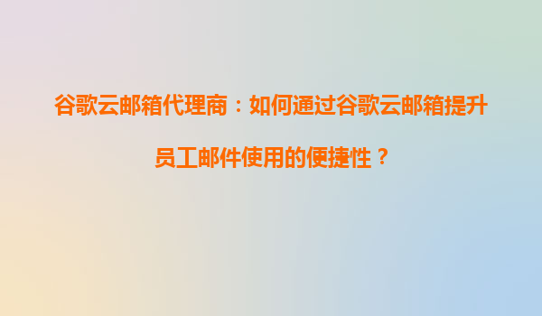 2025-09-16谷歌云邮箱代理商:如何通过谷歌云邮箱提升员工邮件使用的便捷性? 引言 在数字化办公时代,高效、安全的邮件系统是企业内部沟通和外部业务往来的核心工具。作...