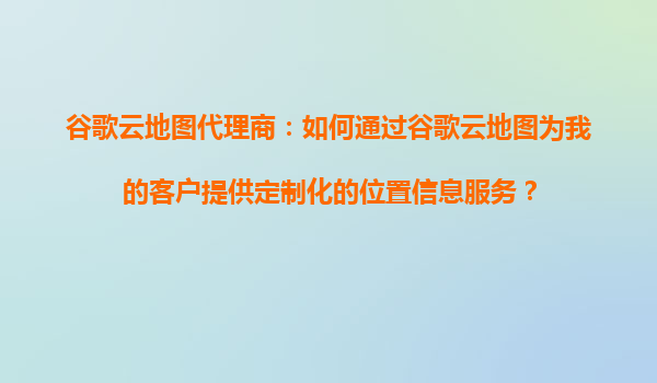 2025-09-16谷歌云地图代理商:如何通过谷歌云地图为我的客户提供定制化的位置信息服务? 引言 在数字化时代,位置信息服务(LBS)已成为企业提升用户体验、优化业务流程的重要工具。作为谷歌云地图...
