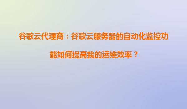2025-09-16谷歌云代理商:谷歌云服务器的自动化监控功能如何提高我的运维效率? 一、谷歌云自动化监控的核心优势 谷歌云(GoogleCloudPlatform,GCP)通过其强大的基础设施和原生工具(如CloudMonitoring...