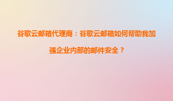 2025-09-16谷歌云邮箱代理商:谷歌云邮箱如何帮助我加强企业内部的邮件安全? 一、引言 随着企业信息化程度不断提升,电子邮件已成为企业内部沟通和业务往来的重要工具。然而,邮...