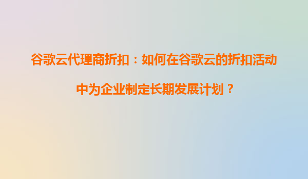 2025-09-16谷歌云代理商折扣:如何在谷歌云的折扣活动中为企业制定长期发展计划? 在数字化转型的时代,云计算已成为企业提升竞争力的核心工具之一。作为全球领先的云服务提供商,谷歌云(GoogleCloud)以其卓越的技术实...