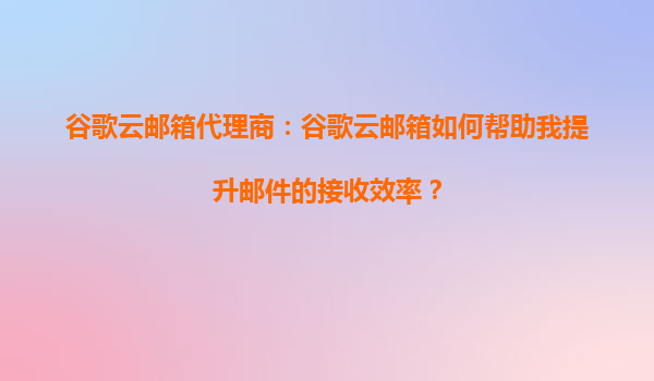 2025-09-16谷歌云邮箱代理商:谷歌云邮箱如何帮助我提升邮件的接收效率? 在今天的数字化商业环境中,邮件的接收和发送效率直接影响企业的运营效率和客户体验。谷歌云邮箱(GoogleWorkspace邮箱)作为全球领先的企业邮箱解决...
