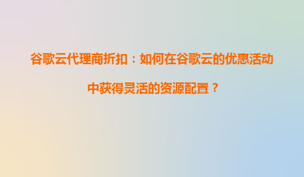 2025-09-16谷歌云代理商折扣:如何在谷歌云的优惠活动中获得灵活的资源配置? 一、谷歌云的优势与资源配置灵活性 谷歌云(GoogleCloudPlatform,GCP)作为全球领先的云...