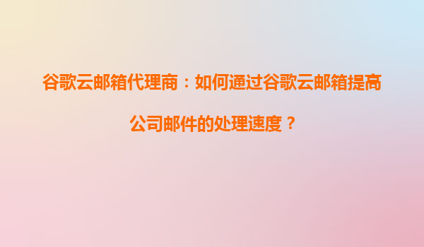 2025-09-16谷歌云邮箱代理商:如何通过谷歌云邮箱提高公司邮件的处理速度? 引言 在当今快节奏的商业环境中,高效的邮件处理能力是企业沟通和运营的关键。谷歌云邮箱(Gma...