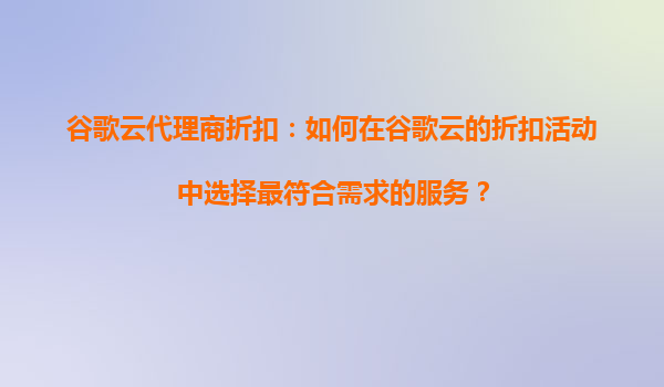 2025-09-16谷歌云代理商折扣:如何在谷歌云的折扣活动中选择最符合需求的服务? 引言 谷歌云(GoogleCloudPlatform,GCP)作为全球领先的云计算服务提供商之一,以其高性能、可靠...