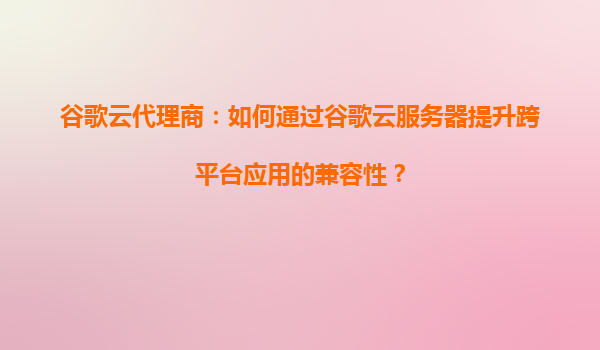 2025-09-06谷歌云代理商:如何通过谷歌云服务器提升跨平台应用的兼容性? 引言 在当今数字化时代,跨平台应用已成为企业和开发者的标配,而应用的兼容性是决定用户体验和业务成功的关键因素之...