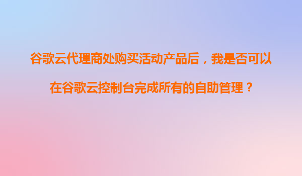 2025-11-05谷歌云代理商处购买活动产品后,是否可以在谷歌云控制台完成所有自助管理? 一、谷歌云与代理商协同服务的优势 谷歌云(GoogleCloud)作为全球领先的云计算平台,提供丰富的IaaS、PaaS...
