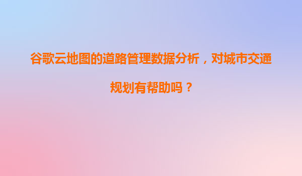 2025-11-05谷歌云地图的道路管理数据分析在城市交通规划中的应用价值 一、引言 随着城市化进程的加速,交通拥堵和规划不合理成为全球城市治理的重要挑战。谷歌云平台凭借其强大的数据采集、存储和分析能力,为城市交...