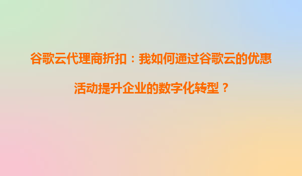 2025-09-04谷歌云代理商折扣:我如何通过谷歌云的优惠活动提升企业的数字化转型? 一、数字化转型的挑战与机遇 在当今快速发展的数字化时代,企业面临着前所未有的转型压力。无论是传统行业的升级,还是新兴...