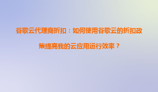 2025-09-04谷歌云代理商折扣:如何使用谷歌云的折扣政策提高我的云应用运行效率? 一、谷歌云的优势与折扣政策的价值 谷歌云(GoogleCloudPlatform,GCP)是全球领先的云计算服务提供商之一,凭借其高性能的计算资...