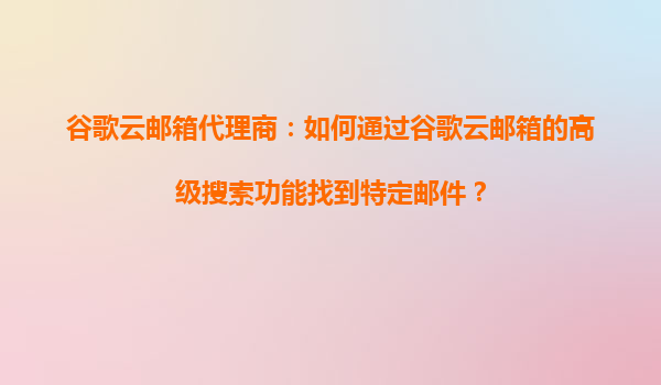 谷歌云邮箱代理商指南:高效利用高级搜索功能定位特定邮件 一、谷歌云邮箱的代理商价值与搜索功能优势 作为谷歌云邮箱代理商,理解其核心功能是服务客户的关键。谷歌云邮箱(GSuite/Gmail)凭借强大的...