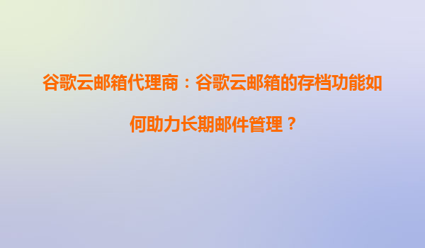 2025-09-02谷歌云邮箱代理商:谷歌云邮箱的存档功能如何助力长期邮件管理? 引言:企业邮件管理的挑战 在数字化办公时代,电子邮件作为核心沟通工具,长期积累的邮件数据...