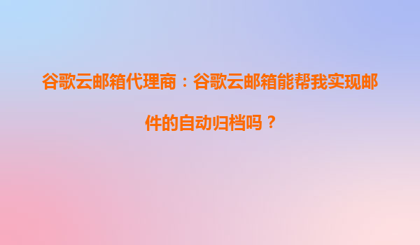 2025-08-31谷歌云邮箱代理商:谷歌云邮箱能帮我实现邮件的自动归档吗? 一、谷歌云邮箱的自动归档功能概述 谷歌云邮箱(GmailforBusiness)作为企业级邮件解决方案,提供了强大的邮件管理功能,其中自动归档是其核心...