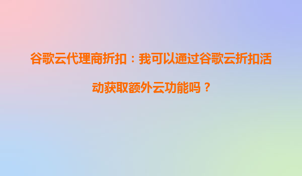 2025-08-30谷歌云代理商折扣:通过折扣活动解锁更多云功能 在当今数字化时代,云计算已成为企业转型的核心驱动力。作为全球领先的云服务提供商,谷歌云(GoogleCloud)凭借其强大的技术实力和创新的解决方案,为企业提供了...